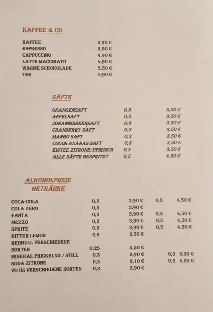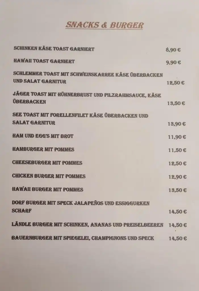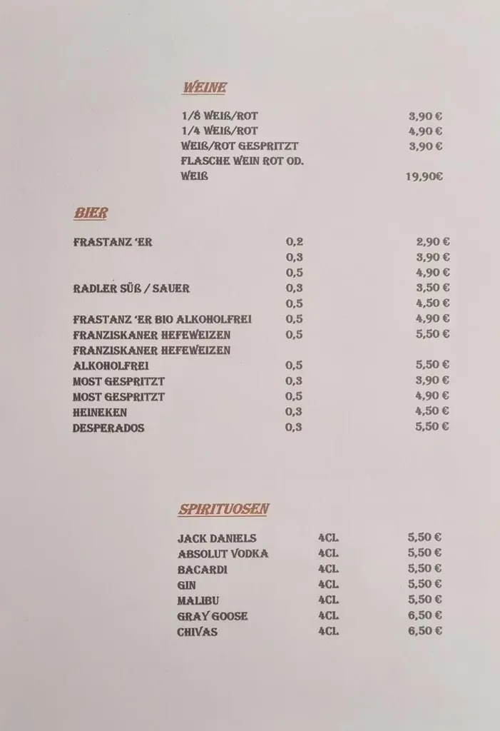 Unsere vielfältige Speisekarte bietet für jeden Geschmack das Richtige. Genießen Sie Klassiker wie Leberle mit Reis oder Kartoffeln, eine wärmende Flädlesuppe oder eine aromatische Knoblauchsuppe. Für Salatliebhaber haben wir den knusprigen Backhendlsalat oder den frischen Thunfischsalat. Dazu servieren wir eine erlesene Auswahl an Weinen, Bieren, Spirituosen sowie Snacks und Burger für den kleinen Hunger zwischendurch.