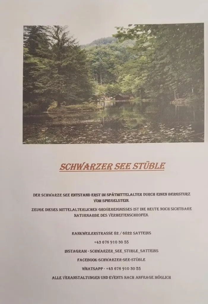 Unser Schwarzer See Stüble liegt eingebettet in die wunderschöne Natur von Satteins, umgeben von majestätischen Gebirgen und sanften Flüssen. Die idyllische Umgebung lädt zu einem entspannten Besuch ein, bei dem Sie die Ruhe und Schönheit der Region genießen können.